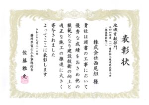 今後も、地域に根差した建設業者として、安心・安全なまちづくりに貢献できるよう、より一層の努力を重ねてまいります。