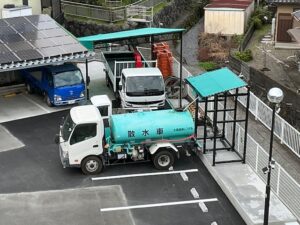 これにより、散水車への給水設備も整備され、社内で使用する水はすべて井戸水へと切り替えられました。