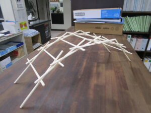 もう一つの体験は、レオナルド・ダヴィンチが考案した「ダ・ヴィンチ橋」作り体験。