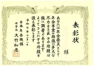 先日、弊社社員が、静岡県年金委員会・健康保険委員に於いて「功労年金委員」として
